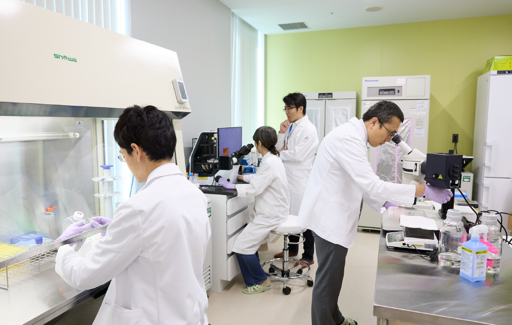 ロート製薬が長年培ってきた細胞加工・製造技術や製剤開発力と、当講座が有する医学的知見と臨床経験を融合させることで、高品質な細胞製剤の開発や効率的な治療法の確立を進めています。